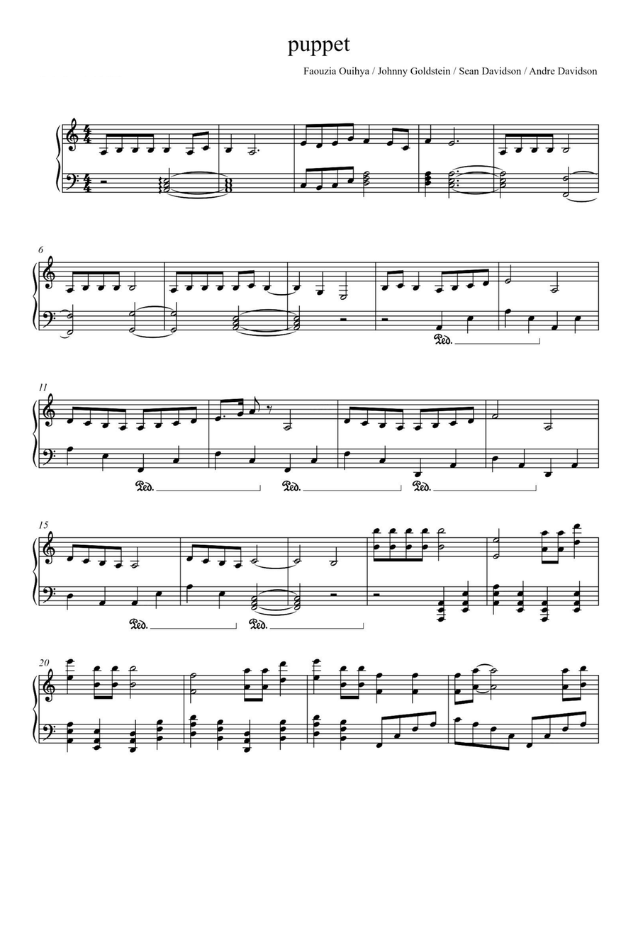 By Faouzia. Composed by Andre Davidson; Faouzia Ouihya; Sean Davidson; Yonatan Goldstein. Arranged by Faouzia. This edition: pdf. 21st Century, Multicultural, Pop, World. Score. 4 pages. Mr. Lu Lai #1280096. Published by Mr. Lu Lai (A0.1716631).Puppet - Faouzia Piano score.