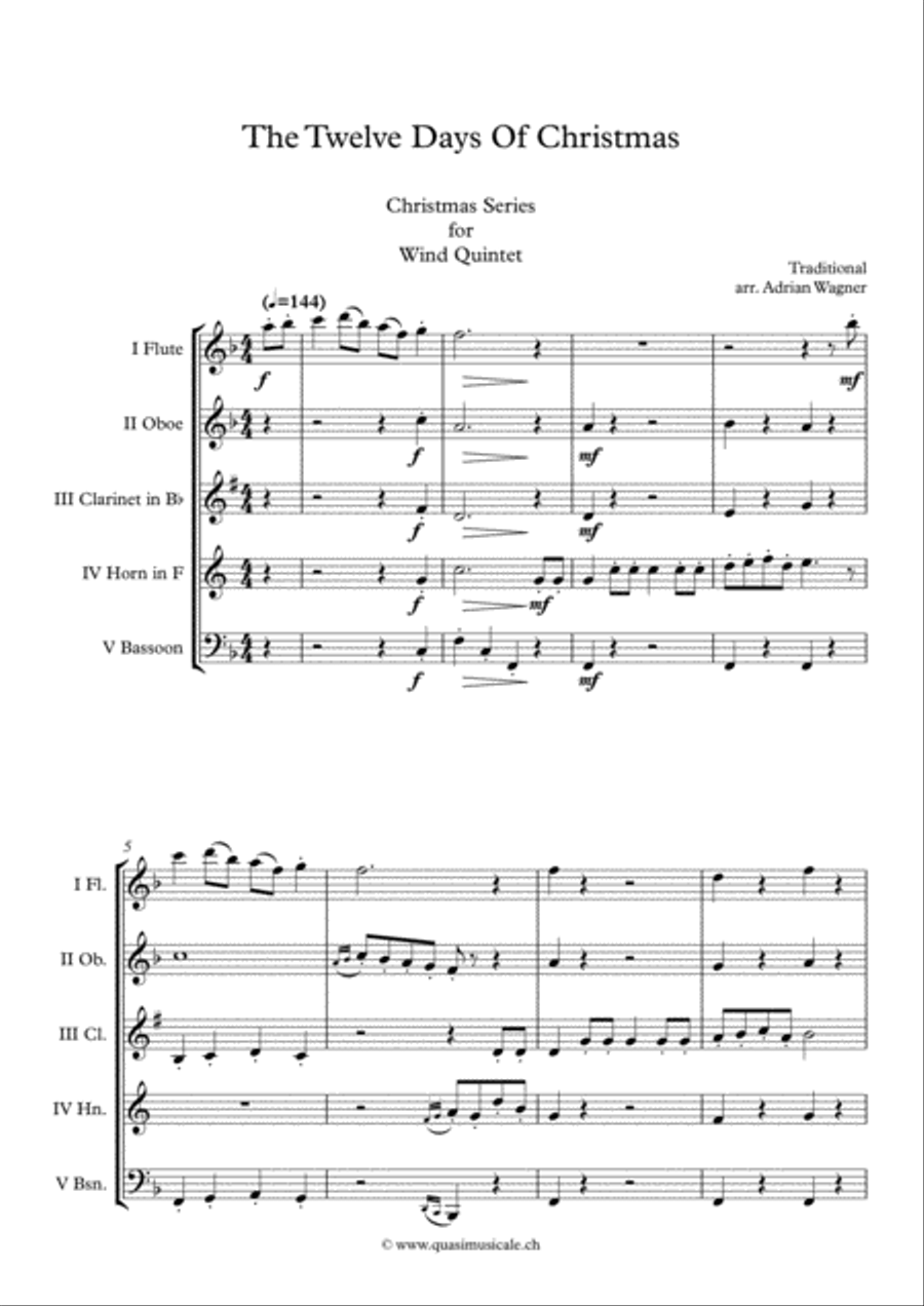Preview: "The Twelve Days Of Christmas" Wind Quintet arr. Adrian Wagner
