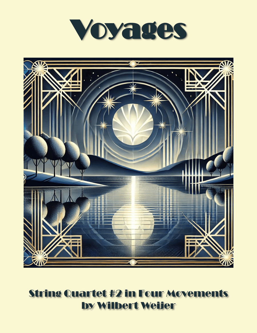 Voyages, String Quartet #2 in 4 movements, is an exciting musical journey to some of the most scenic places in the US Southwest, from the solemn Columbine Canyon, via the ebullient Lake Meredith and the peaceful Clayton Lake, to the lovely Jemez Mountains. Running about 25 minutes in length, this would be a great showcase piece for a string quartet concert or recital.
